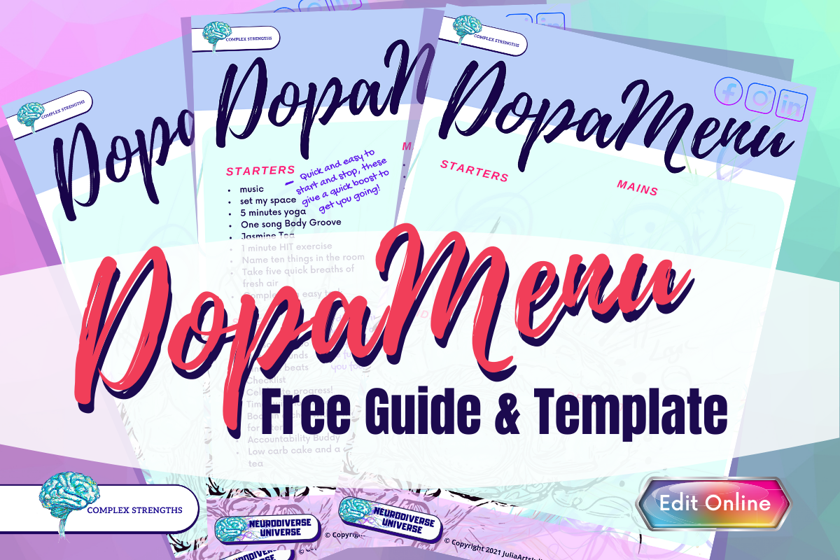 This Dopa Menu is editable online, or by hand, or just to help you understand the concept so you can create your own!